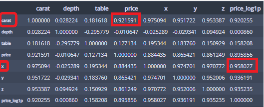 상관관계를 보면 price와 가장 상관계수가 높은 것은 캐럿이고...
