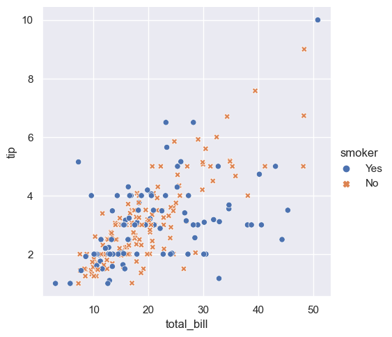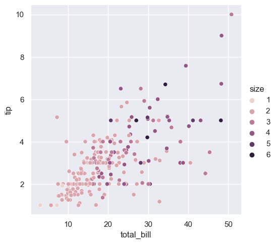 다양한 시맨틱이 통계적 관계를 보여주는데 사용되는 방법을 커스터마이징 하는 더 많은 예제는 scatterplot() API예제에 있다!