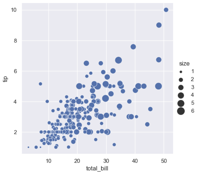 size(손님 수)별로 점 크기를 다르게 해서 산점도가 그려진다!