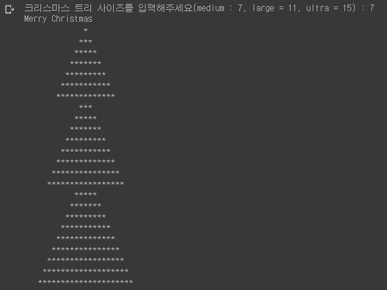 n = int(input('크리스마스 트리 사이즈를 입력해주세요(medium : 7, large = 11, ultra = 15) : '))