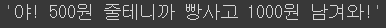 '야! 500원 줄테니까 빵사고 1000원 남겨와!'