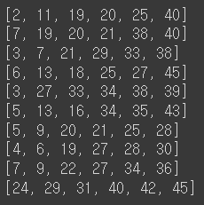 display_lotto() # 1 ~ 45까지 6개의 숫자