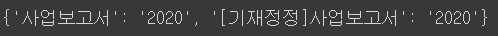 아래는 2020년 보고서만 딕셔너리 형태로 뽑아주는 코드이다.