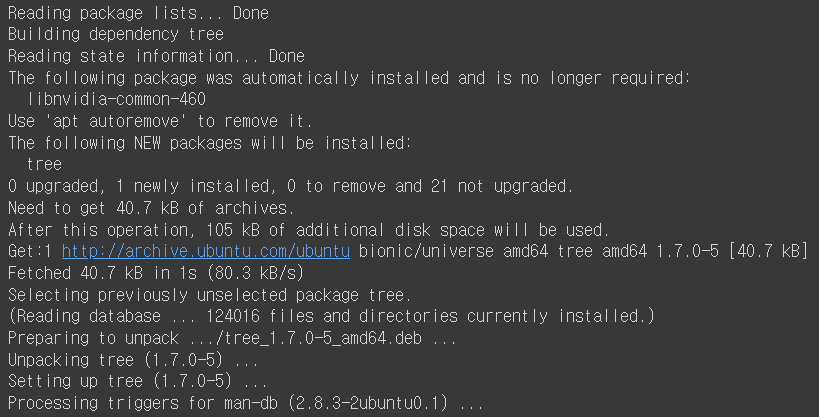 일단 디렉토리의 구조를 출력하는 우분투(Os)패키지인 tree를 설치하자!
