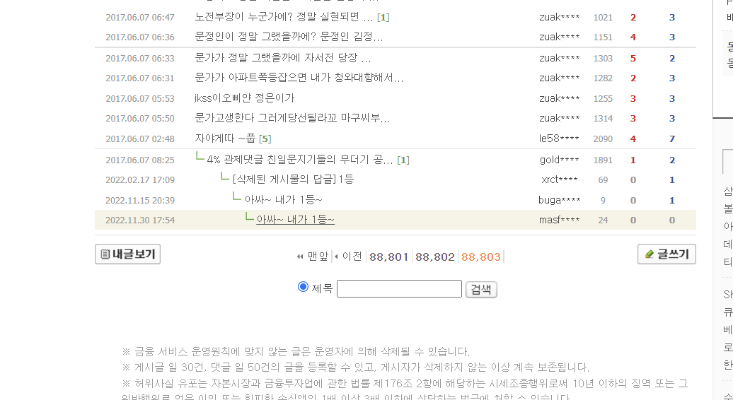 위와 같은데 종목토론실의 끝 페이지가 3이라 금방 불러와집니다!