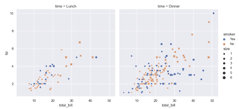 col은 time(범주형인 time에 따라 그래프를 분할)