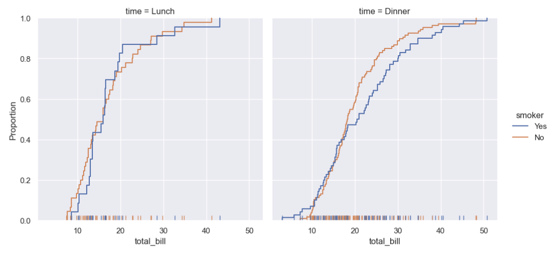 kind='ecdf'를 통해 누적분포를 그린 것을 알 수 있고...
