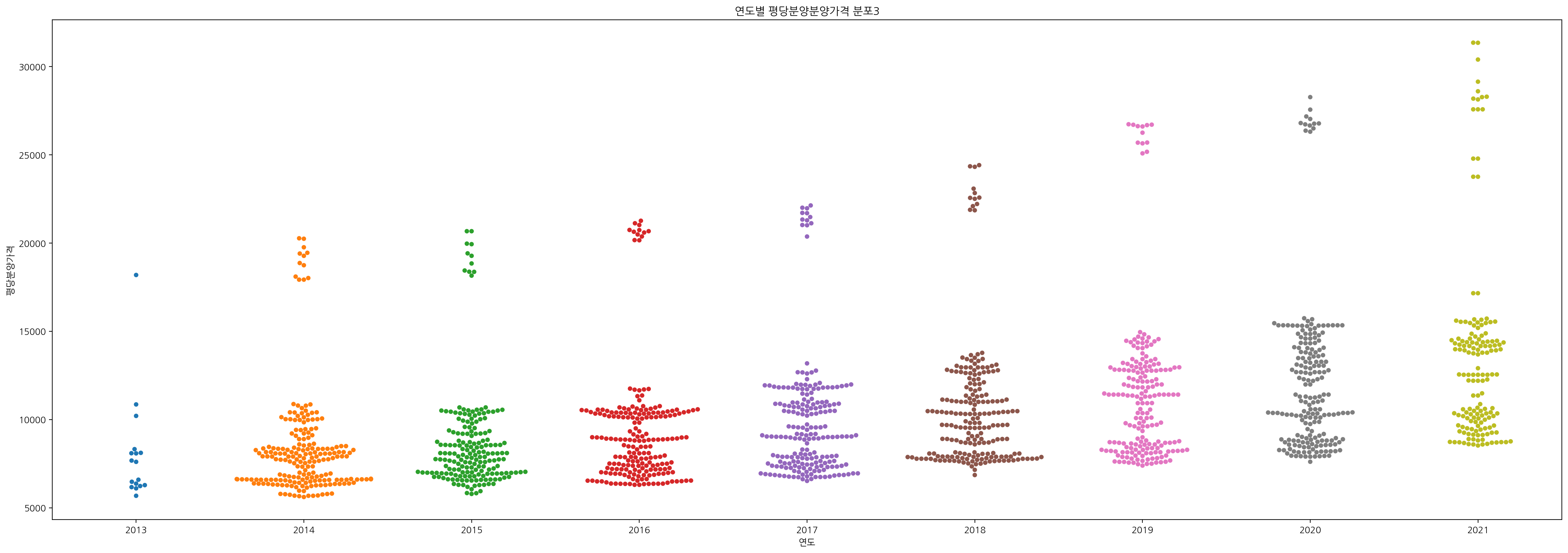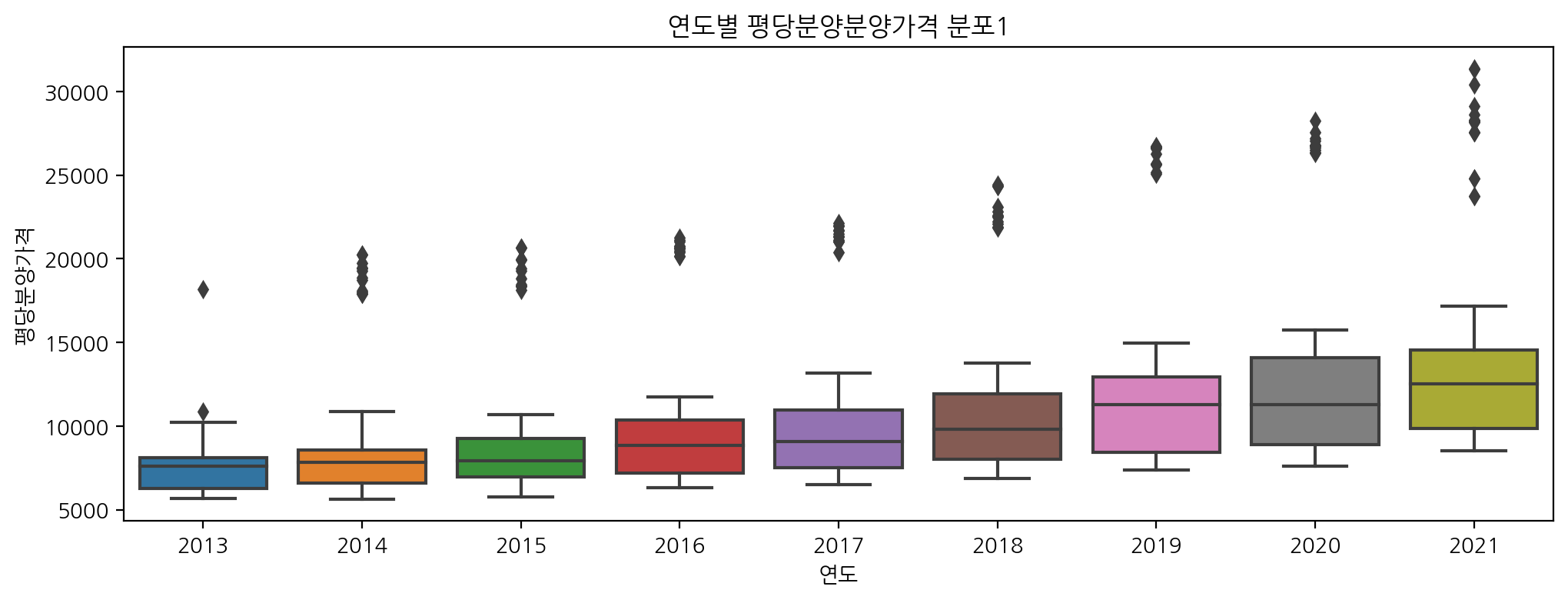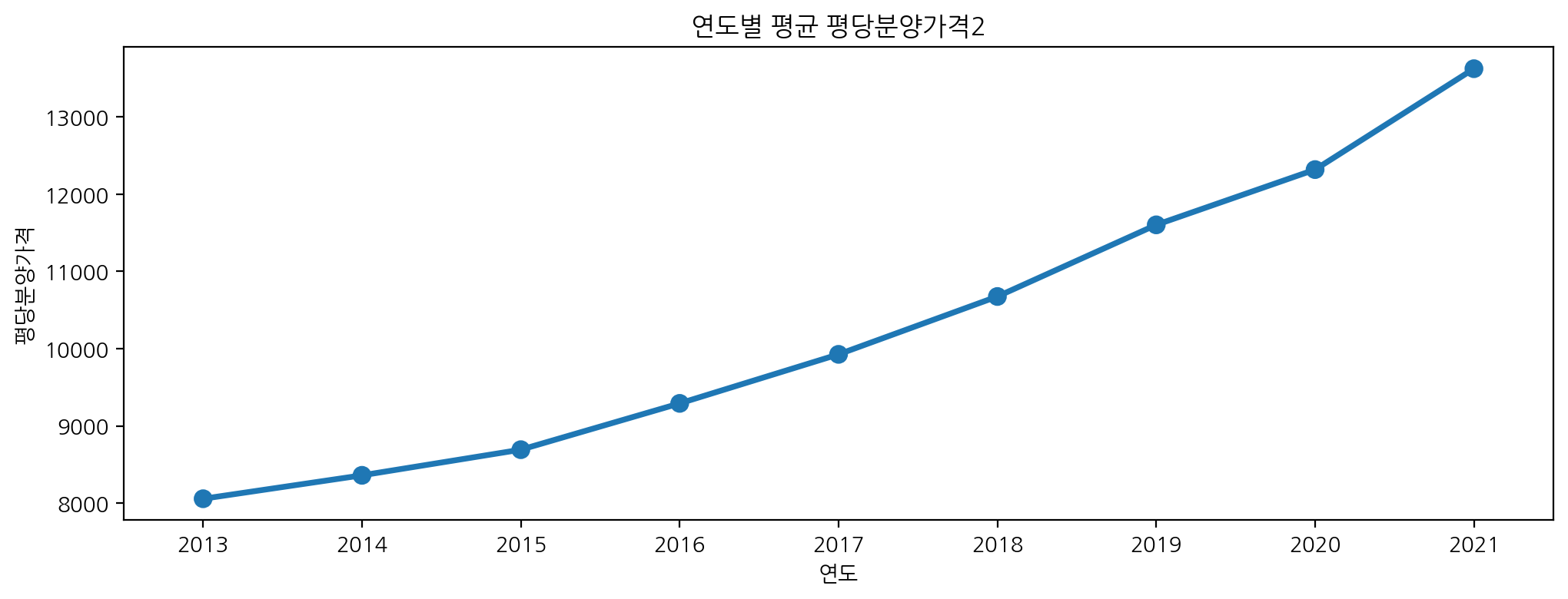 이번엔 연도별 지역별 평당분양가격의 평균을 groupby로 살펴보자!