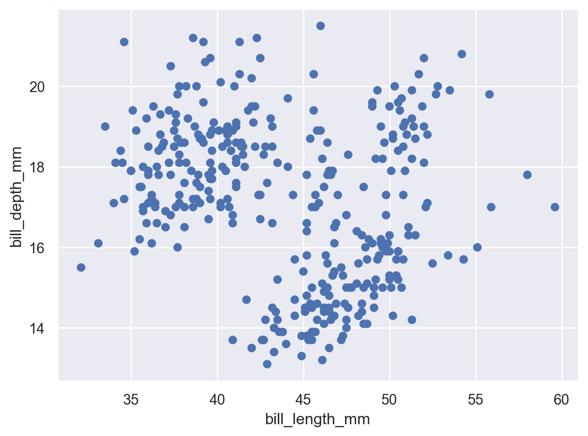 so.Plot(penguins, x="bill_length_mm", y="bill_depth_mm")