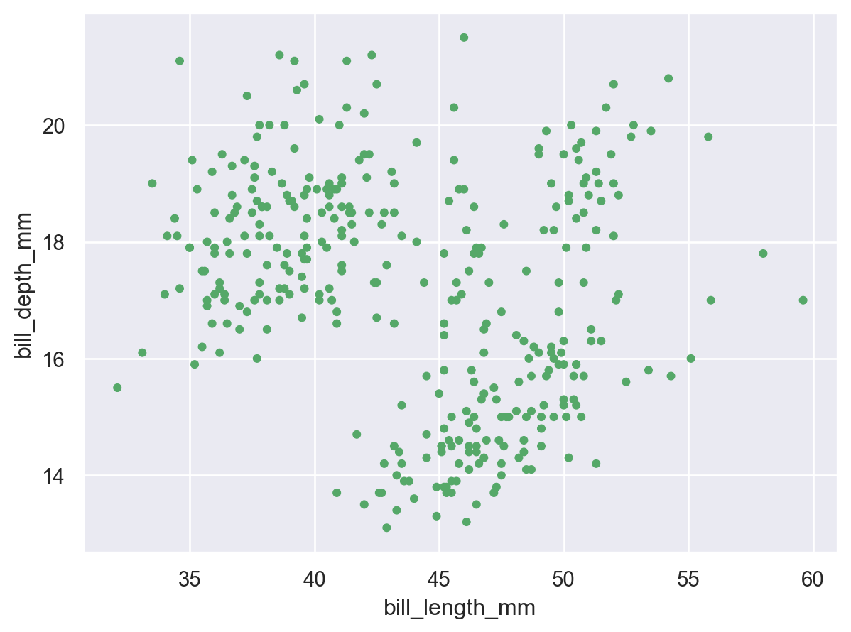 penguins, x="bill_length_mm", y="bill_depth_mm",