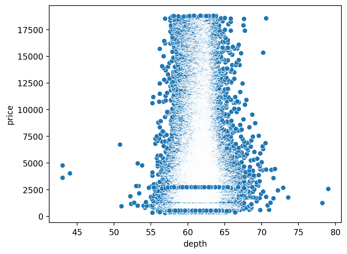 상관행렬을 보면 depth랑 price의 상관관계가 약해보인다