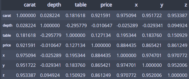 확실히 carat과 price는 양의 상관관계임을 확인해 볼 수 있고...