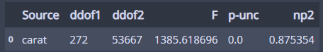 즉 캐럿이 가격 분산의 84.9%를 설명한다고 볼 수 있다!