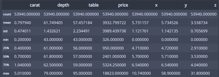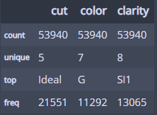 53940개의 다이아몬드 정보를 담고 있다!(결측치는 없음)