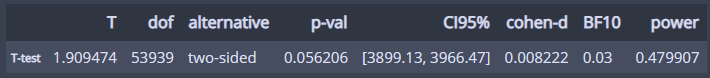 p값이 0.05보다 작기 때문에 귀무가설 기각! 가격 평균은 4000이 아니다!