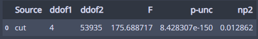 에타제곱을 통해 cut이 가격에 얼마나 기여하는지 알아보면...