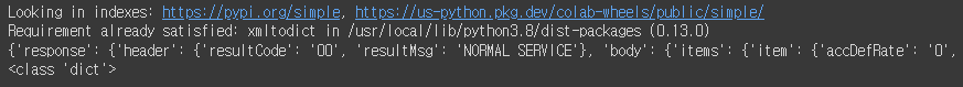 !pip install xmltodict #xmltodict모듈을 사용하기위해 xmltodict패키지 설치