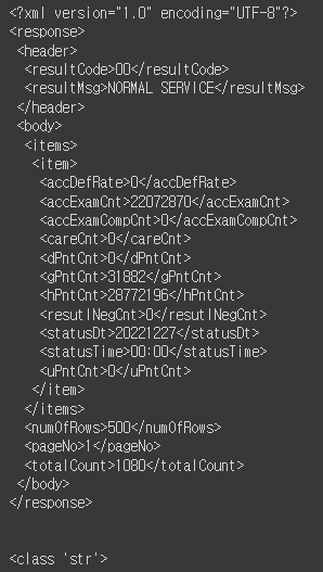 data_xml = response.text #xml형식의 데이터