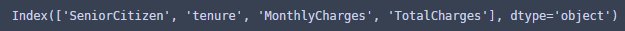 숫자 데이터인데 object타입인 것(TotalCharges) 안에서